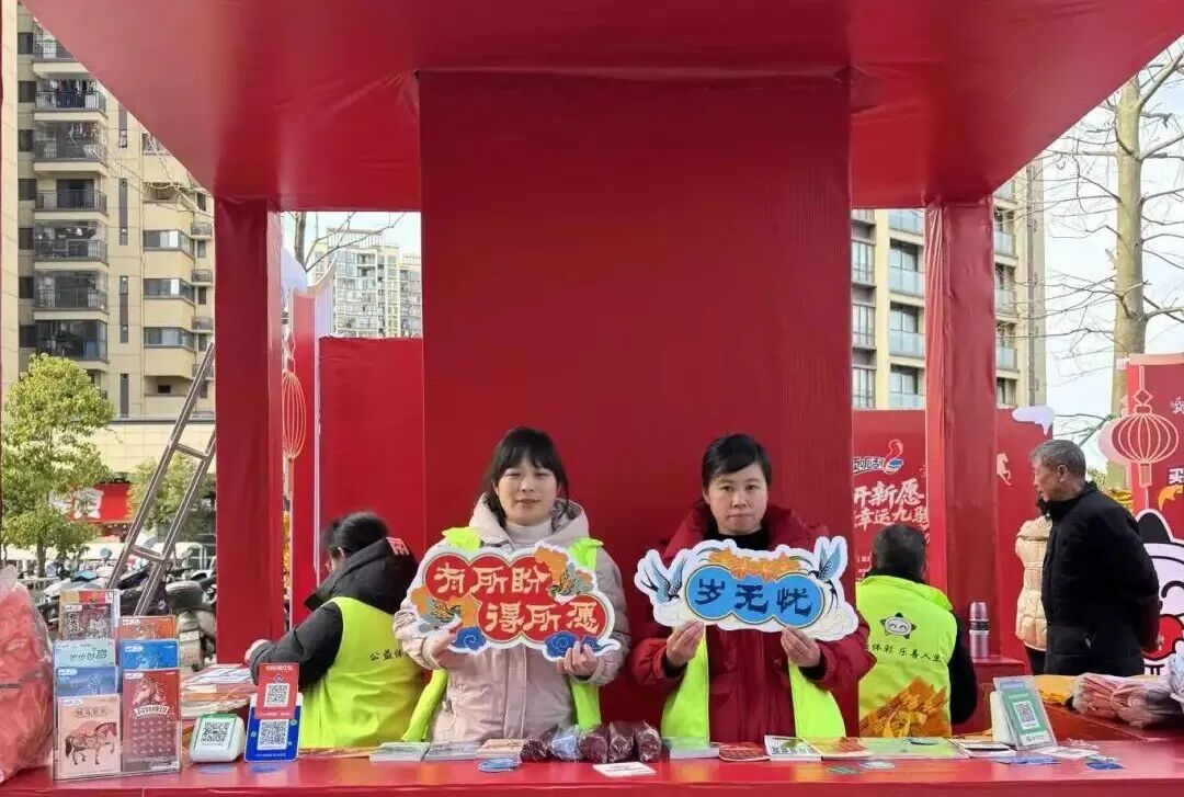互动打卡区和公益体验区人气尤为高涨。在“公益打卡墙”前,市民拍照分享至社交平台即可解锁精美礼品,互动热情持续升温;公益体验区里,“你划我猜”“拼图竞速”“一蹴而就”等趣味游戏更是排起长队,参与者比划猜词、拼图竞速,在紧张欢快的游戏中感受新春的热闹氛围。