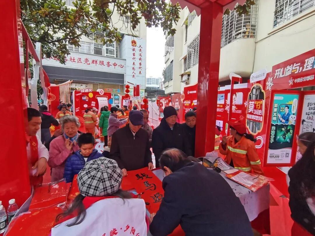 写春联区域墨香阵阵,红纸铺展,居民们或挥毫泼墨书写新春期许,或领取饱含美好寓意的春联福字,体彩元素与新春祝福在笔墨间交融,为新年添上浓浓喜庆;