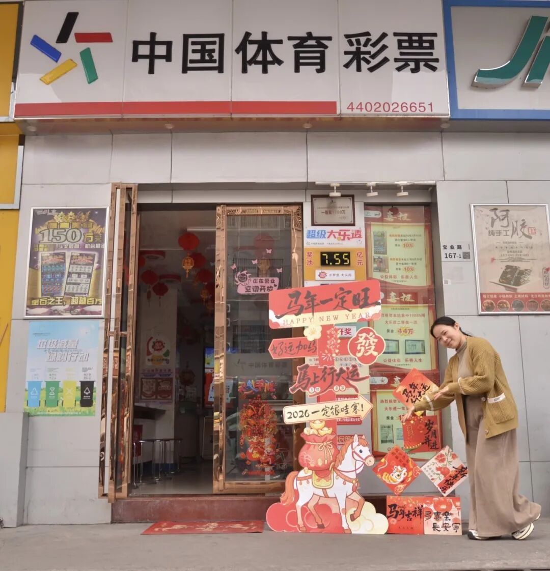 在街巷深处,烟火气里的年味亦格外动人。深圳市龙华区观湖街道宝业路167-1号4402026651体彩实体店新春焕新装——喜庆雅致的马年装饰、整洁明亮的店面,处处透着浓厚的节日氛围。代销者小欧满怀热忱,迎接每一位街坊的到来。