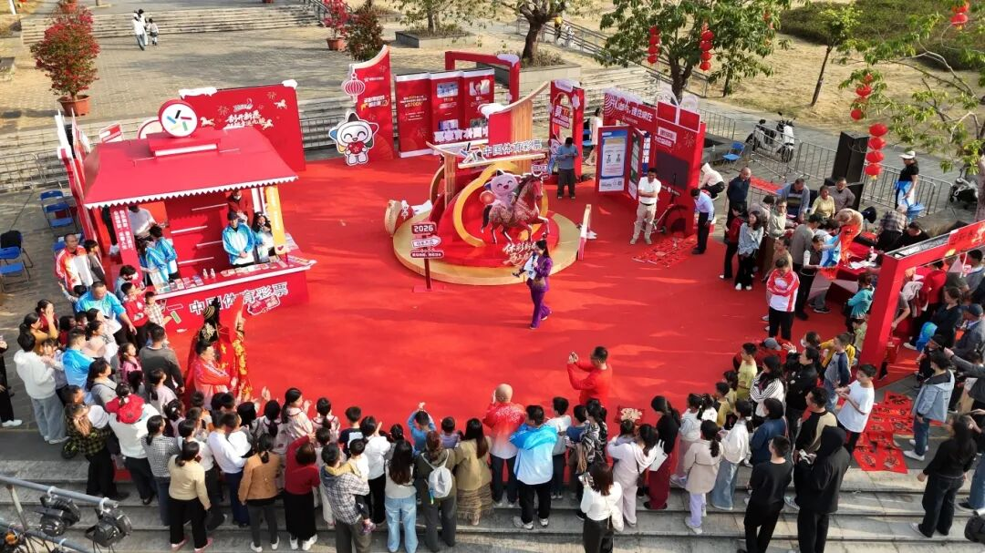 春临港城,体彩添喜。马年春节期间,湛江市南国热带花园里花开正艳丽,湛江“体彩新春季 马上启新程”新春贺岁市集在此热闹开市。活动现场从“体彩新春季”打卡装置到“公益赠春联”专区,处处透着喜庆吉祥的寓意。