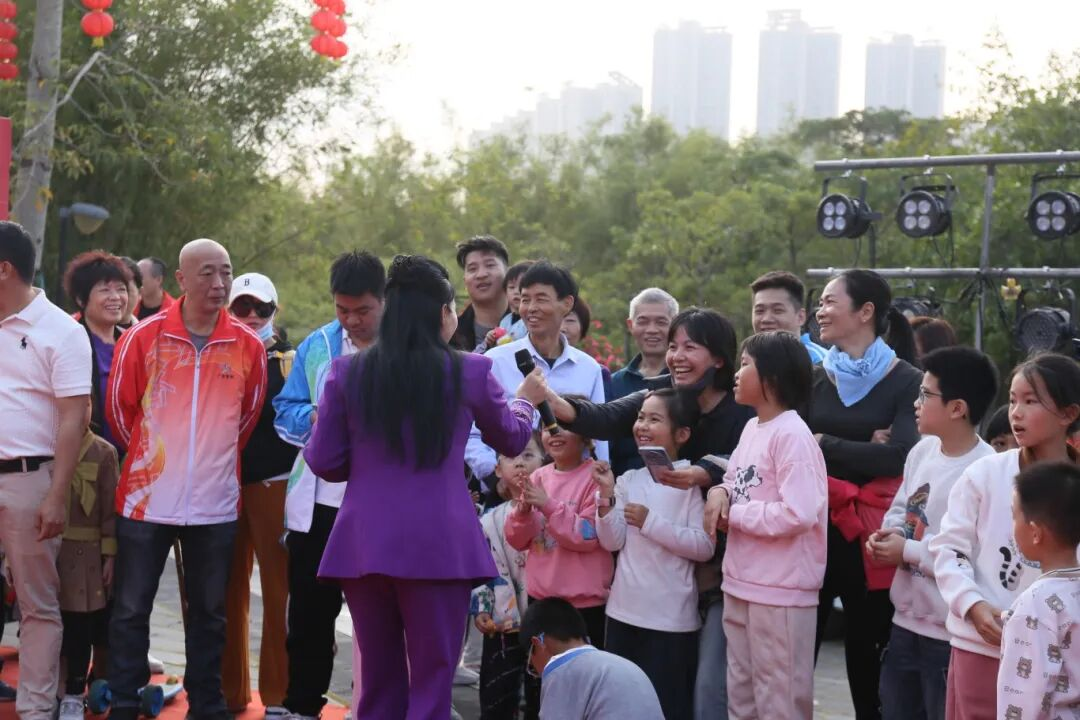 表演间隙,体彩知识有奖问答穿插进行:“体彩公益金广泛用于哪些方面?”“说一下中国体育彩票的发行宗旨?”台下观众争相举手,亲子家庭齐上阵,氛围热烈。