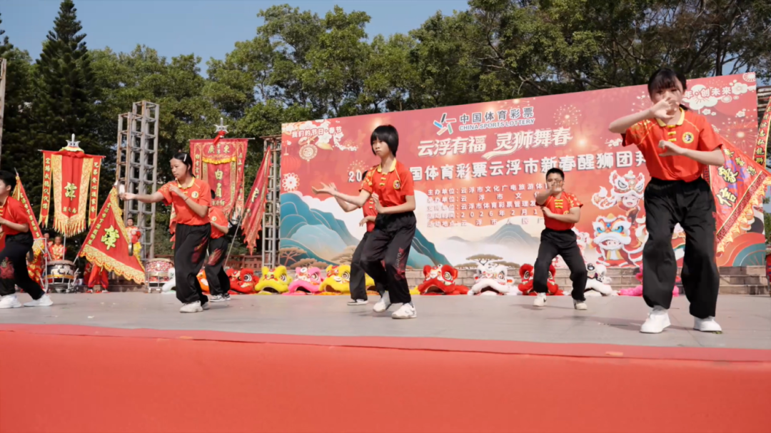 日前,在云浮市人民广场,随着一阵激昂的锣鼓声划破天际,“云浮有福 灵狮舞春”2026年中国体育彩票云浮市新春醒狮团拜会拉开帷幕。
