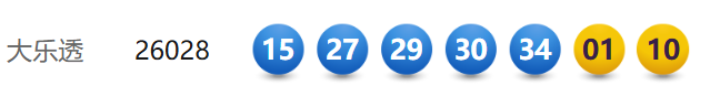 3月18日,超级大乐透第26028期开奖。前区开出号码15、27、29、30、34;后区开出号码01、10。本期全国销售3.03亿元,为国家筹集彩票公益金1.09亿元。