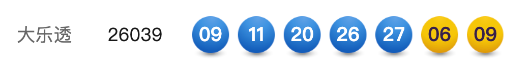 4月13日,超级大乐透第26039期开奖。前区开出号码09、11、20、26、27 ;后区开出号码06、09。本期全国销售3.21亿元,为国家筹集彩票公益金1.15亿元。其中,广东广州中得1注基本投注一等奖,出自4401030503体彩实体店。广东惠州中得2注追加投注一等奖,出自4411032306体彩实体店。广东东莞中得1注基本投注一等奖,出自4417017622体彩实体店。
