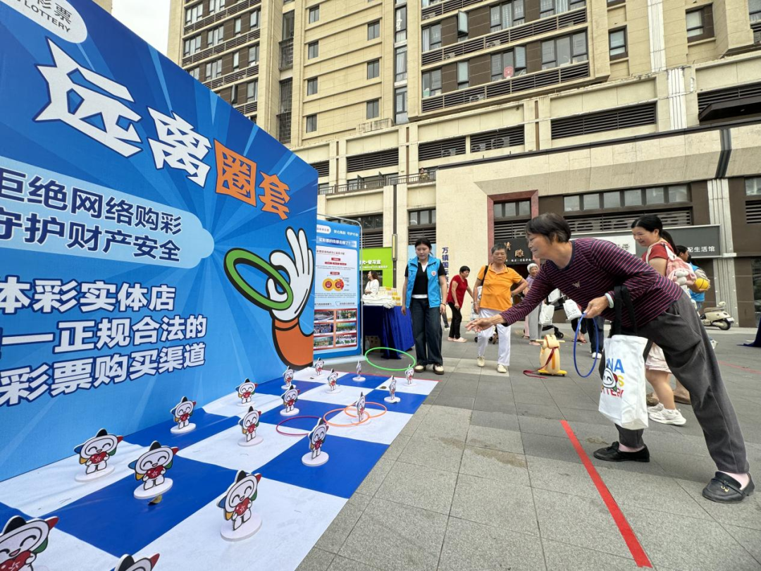 其中,“沙包投投乐”考验精准投掷,老少齐上阵比拼技巧;“远离圈套”以游戏形式警示非法彩票、涉彩诈骗陷阱,寓教于乐传递反诈知识;“中彩篮球框”融合投篮乐趣与体彩元素,让市民在运动中感受公益活力。简单易玩的项目覆盖全年龄段,市民们排队参与、互相加油,在轻松氛围里加深对体彩公益的认知。