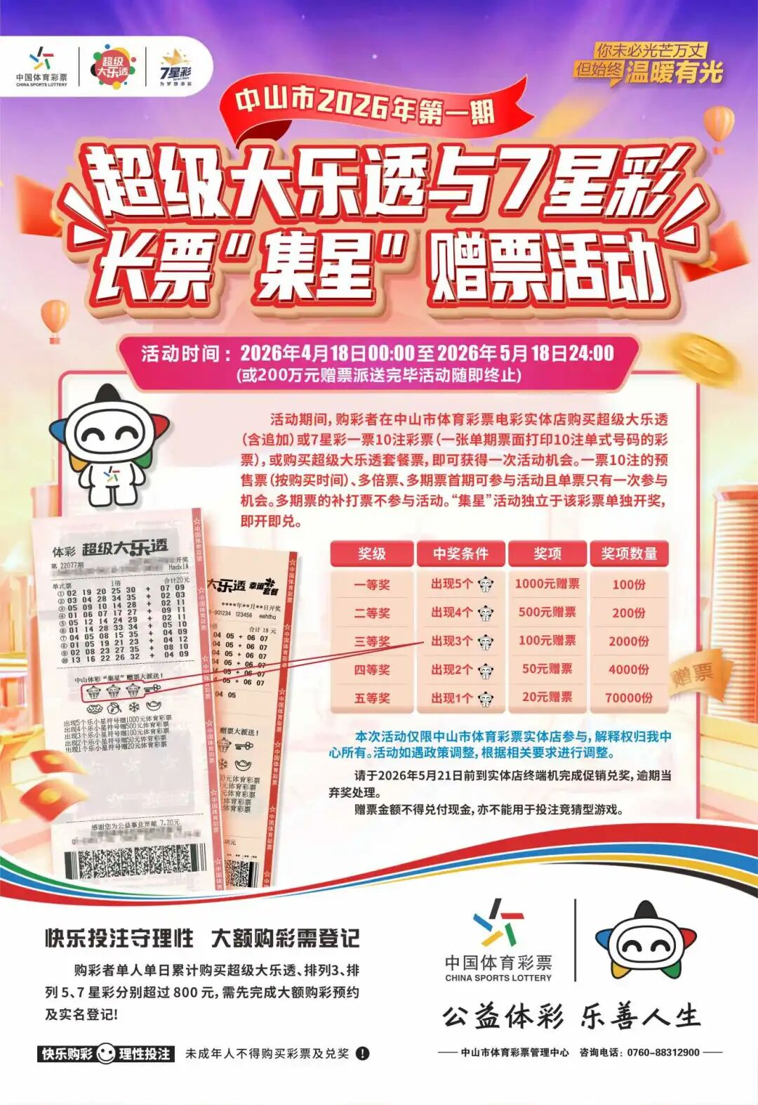 集星得赠票!中山体彩“集星”活动火热进行