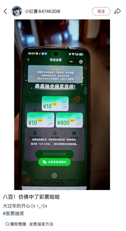 四月全国税收宣传月已启动,今年的宣传主题是“税收·法治·公平”,其中最出圈的活动,便是50城同步开启的有奖发票试点——网友们狂晒中奖截图,直呼体验堪比刮彩票,热度直接拉满。