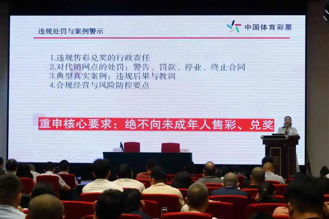 本次会议同步开展多维度、全覆盖的业务培训,紧扣合规经营、风险防控、责任彩票等核心内容展开。培训现场围绕违规售彩兑奖的行政责任、代销实体店处罚类型、典型违规案例等进行详细讲解,重申“绝不向未成年人售彩、兑奖”的核心要求,同时讲解了电彩游戏大额预约登记流程,帮助从业人员熟练掌握业务规范。