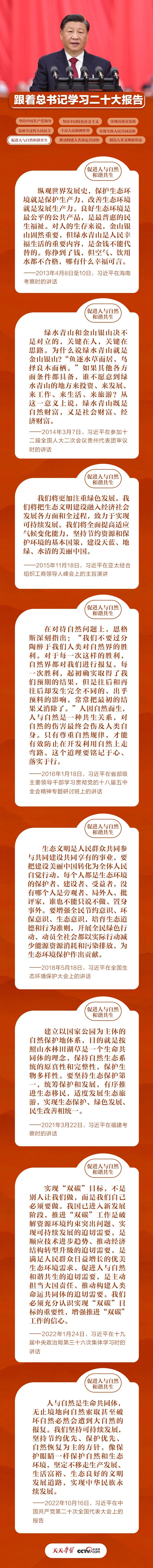 《学习党的二十大》专栏梳理习近平总书记关于促进人与自然和谐共生重要论述,与您一同领悟中国式现代化本质要求的深刻内涵。