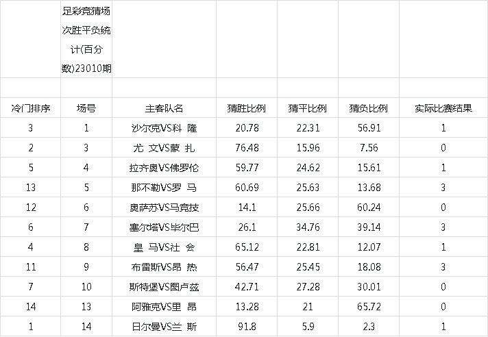 足彩胜负23010期冷门:日尔曼胜爆头冷
