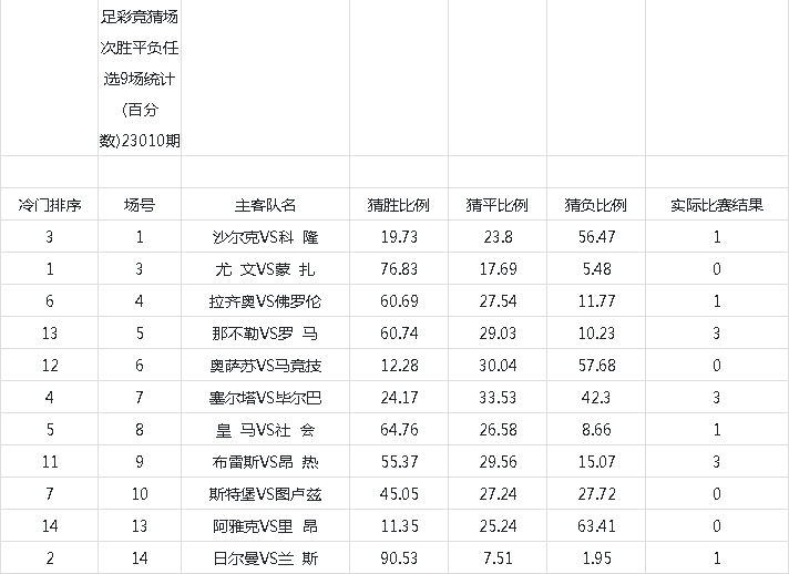足彩胜负23010期任9冷门:阿雅克主胜最稳